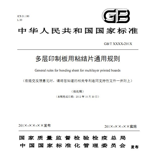 GB/T XXXX-201X《多層印制板用粘結(jié)片通用規(guī)則》